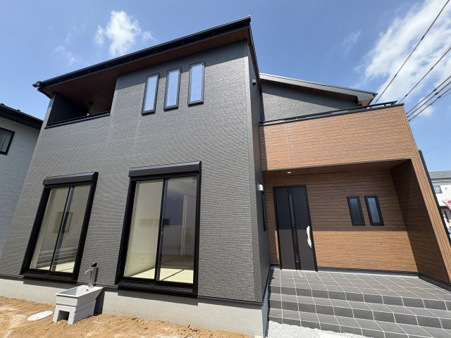 【外観】〇4号棟〇 4LDK+SIC+2WIC+カースペース4台 玄関エントランスが広々としている4号棟。奥行きのあるアプローチがある事で雨に日でもぬれずに傘の準備が出来ます。 ※2025年9月撮影